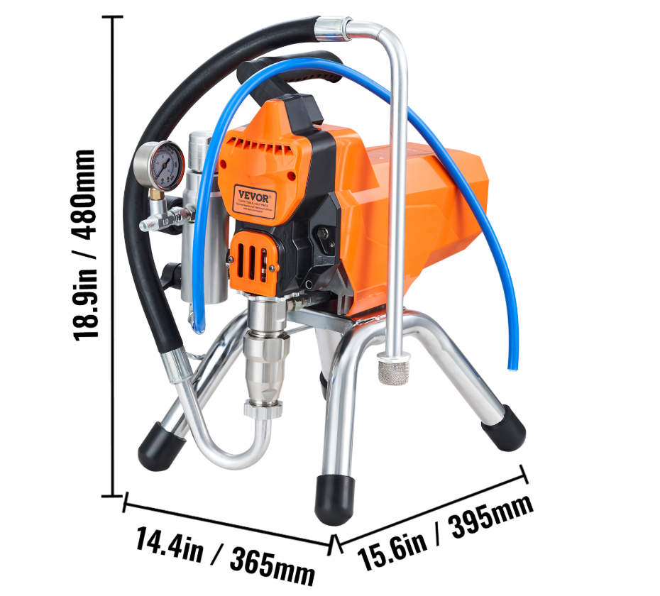 Цей безповітряний розпилювач створює гладку, рівну поверхню. Він оснащений потужним двигуном. Знімна конструкція дозволяє швидко та легко очищати його після розпилення. Наш розпилювач підходить для роботи з різноманітними матеріалами. Він також широко використовується для домашніх меблів, садових меблів, гаражних воріт тощо.