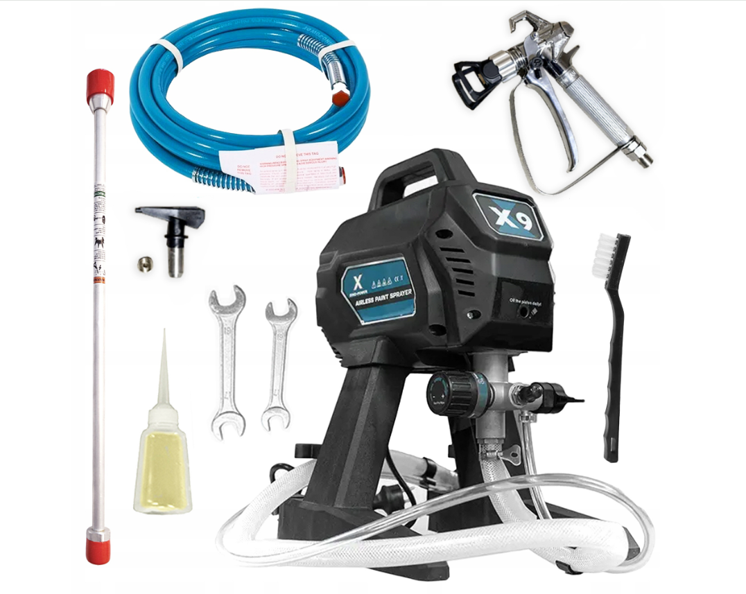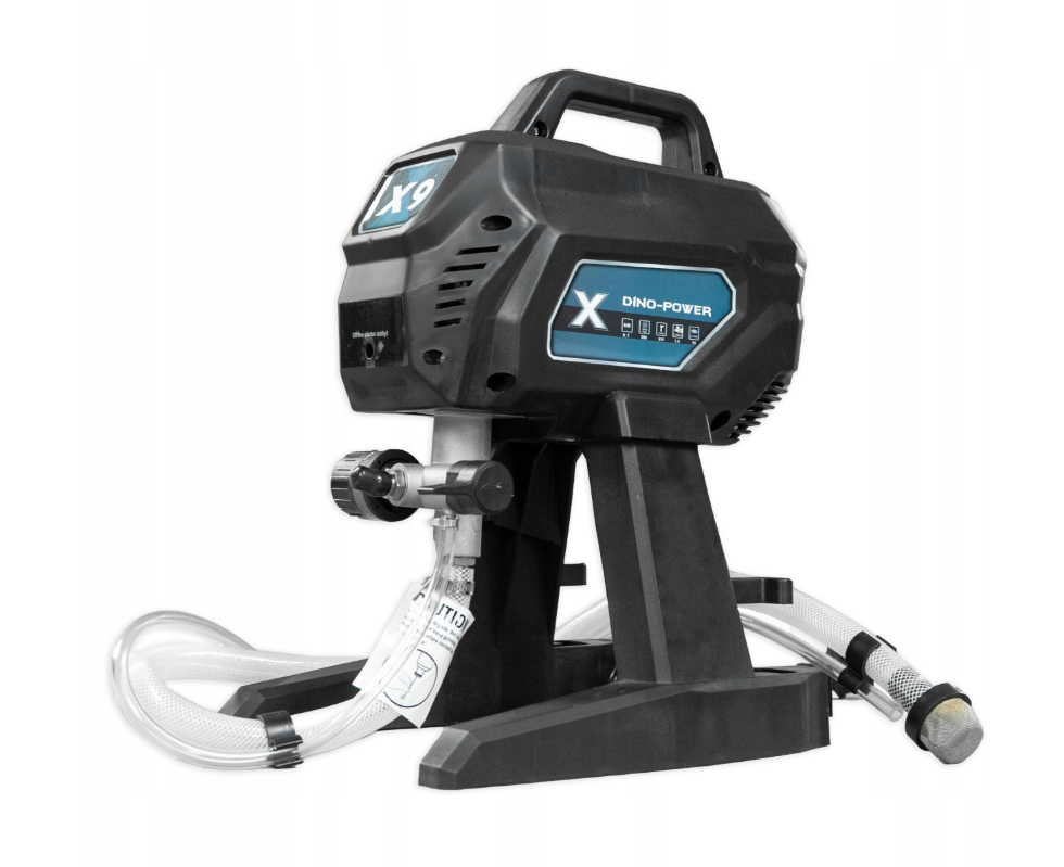 Безповітряний поршневий фарборозпилювач Dinopower X9 призначений для легких та середніх фарбувальних робіт. Він ідеально підходить для ентузіастів самостійного ремонту, які хочуть оновити свою квартиру, будинок чи гараж, а також для фарбування парканів, альтанок чи фасадів. Він також є практичним доповненням до обладнання невеликих ремонтних компаній для менших проектів , які не потребують великого та важкого обладнання. Завдяки компактним розмірам та вазі всього 5,4 кг, X9 легко транспортувати та швидко налаштовувати.