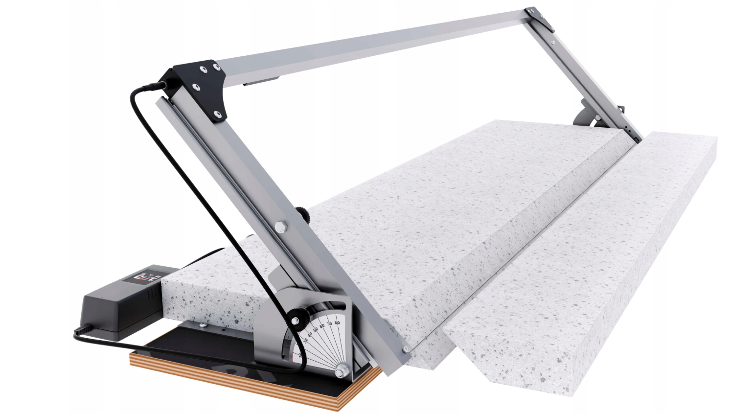 Ця машина призначена для швидкого різання полістиролу в різних площинах. Різання виконується за допомогою нагрітого дроту опору, що робить його надзвичайно швидким і, перш за все, усуває відходи, що утворюються під час традиційного різання, такі як кульки або частинки полістиролу.