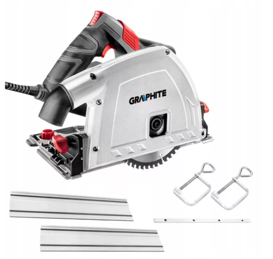 Цей комплект – комплексне рішення для прецизійного різання, ідеально підходить для роботи з деревиною, ламінатом та алюмінієм. Комплект включає: Занурювальну пилу GRAPHITE 1200 Вт (58G495) Комплект напрямних рейок (2 x 700 мм) з роз'ємом та 2 затискачами 1. Занурювальну пилу GRAPHITE 58G495 Цей прецизійний інструмент потужністю 1200 Вт вирізняється своєю здатністю до занурювального різання. На відміну від традиційних пилок, ви можете почати різати будь-де в матеріалі, не починаючи з краю. Інструмент працює з полотнами діаметром 165 мм, а швидкість регулюється від 2200 до 5200 об/хв. Основні характеристики: Точність: Обмежувач глибини зі шкалою та індикатором, регульований зазор башмака відносно рейки. Регулювання кута: Регульований кут різання від 0 до 47°. Безпека та комфорт: Алюмінієвий захист полотна, обертовий викид стружки з можливістю підключення вакууму. Мінімальний зазор від стіни: Спеціальна конструкція корпусу дозволяє різати на відстані до 11,5 мм від перешкод. Довговічність: Гнучкий та міцний гумовий шнур живлення довжиною 2 метри, призначений для професійного використання. 2. Направляючі рейки GRAPHITE 58G495-732: Комплект із двох алюмінієвих напрямних рейок, кожна довжиною 700 мм, які можна з’єднати за допомогою з’єднувача для створення довшої напрямної. Вони забезпечують ідеально рівні розрізи, підвищуючи точність роботи. Основні характеристики: Стабільність: Тефлонові ковзаючі накладки та протиковзкі смужки на нижній стороні напрямних рейок гарантують рівномірне ведення інструменту. Вставка проти відколів: Гумова вставка адаптується до диска при першому використанні, мінімізуючи пошкодження матеріалу. Функціональність: Два затискачі, що входять до комплекту, дозволяють надійно кріпити напрямні рейки до матеріалу, а спеціальні пази затискача не заважають під час роботи.