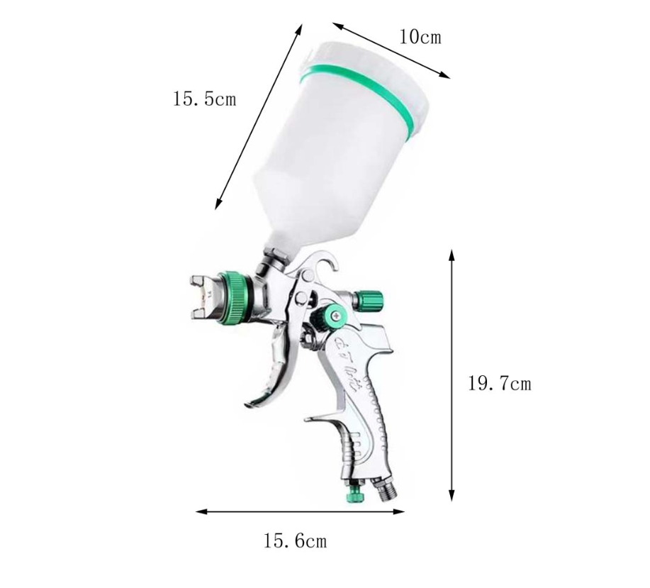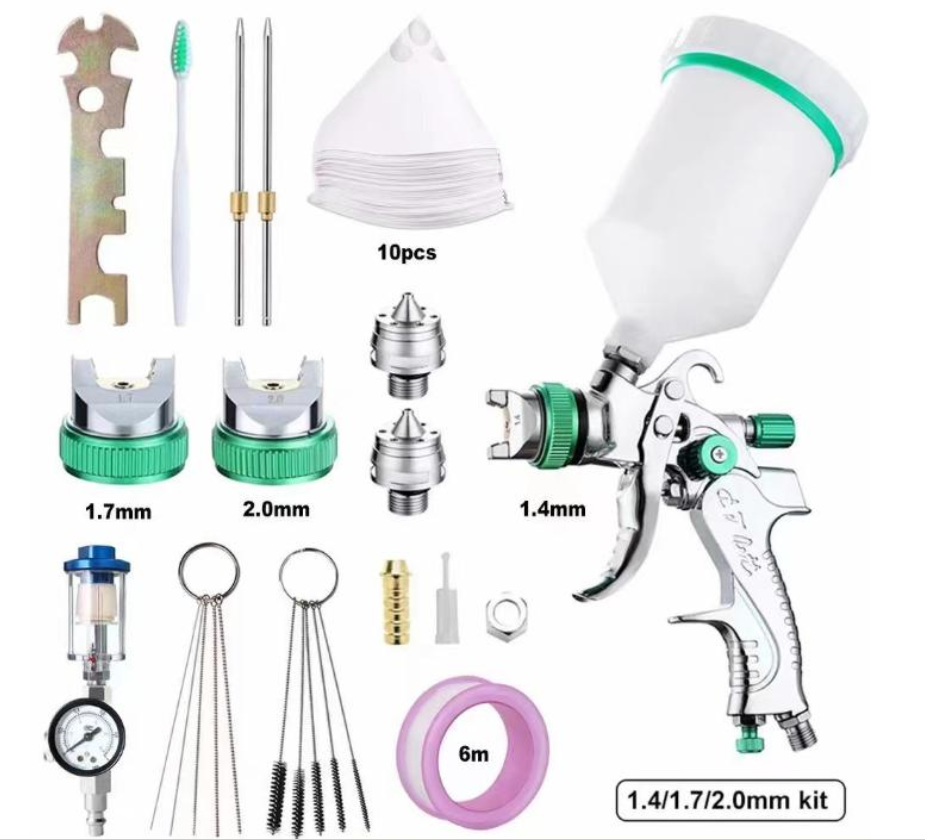 Розпилювач HVLP Gravity Air: Цей професійний розпилювач HVLP забезпечує плавніший та рівномірніший факел розпилення, що підходить для різноманітних поверхонь, включаючи автомобільну, меблеву, ремісничу, ґрунтовку та фарбу.