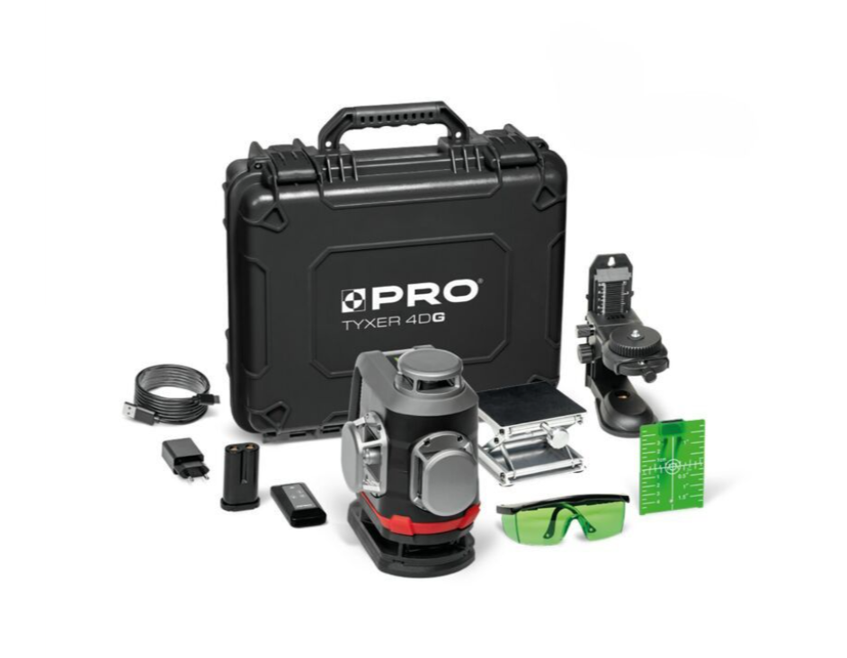 Багатолінійний лазерний нівелір TYXER 4DG можна використовувати для широкого спектру будівельних та оздоблювальних робіт, таких як нівелювання, столярні, монтажні та декоративні роботи. Він генерує чотири площини на 360°. Він має клас захисту IP54 та самонівелюється завдяки магнітному маятнику.