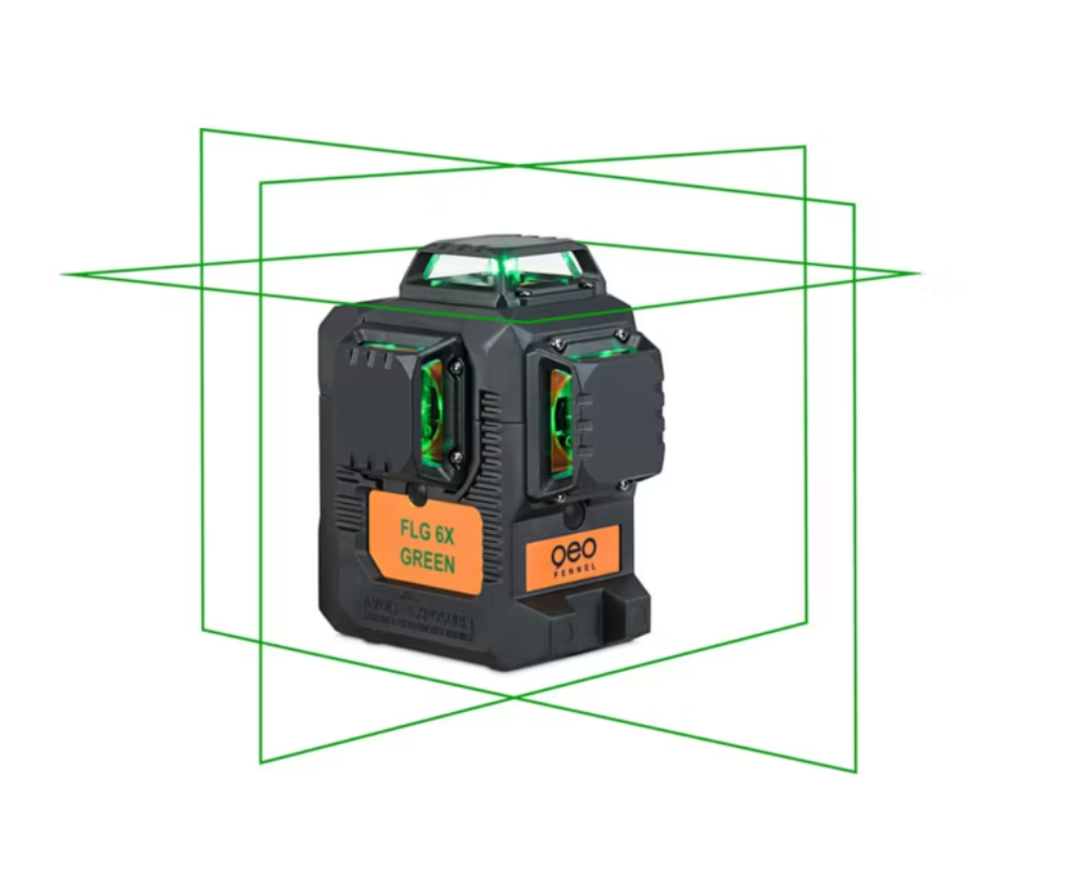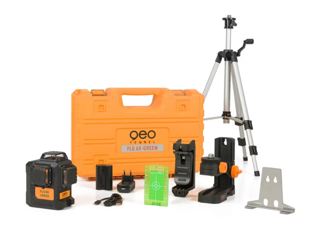 Зелений лазерний нівелір 3x360 FLG 6X-GREEN з перехресними лініями від geo-FENNEL – це професійний, потужний і точний лазерний нівелір, який випромінює повну сітку яскраво-зелених лазерних ліній з великою дальністю 60 м (150 м з детектором). Пристрій простий у використанні та зручний у щоденному використанні. Він ефективно та результативно підтримує та прискорює типові оздоблювальні, ремонтні та монтажні роботи. Три всеспрямовані лазерні промені на 360 градусів (один горизонтальний і два вертикальних) створюють повні контури в інтер'єрах, великих приміщеннях і навіть великих будівлях з високою точністю 0,2 мм/м. Високоякісні лазерні діоди, що використовуються geo-FENNEL, забезпечують дальність, видимість вище середнього та тривалу довговічність. Окреме перемикання ліній економить енергію, використовуючи лише ті лінії, які потрібні на даний момент. Повністю автоматичний самонівелювальний компенсатор миттєво встановлює лазер на правильний рівень і високу точку після ввімкнення. Точність лазера гарантована репутацією та багаторічним досвідом німецького бренду geo-FENNEL. Персоналізований сертифікат точності, що додається до лазера, дозволяє розпочати вимірювання одразу після відкриття упаковки. Потужний літій-іонний акумулятор забезпечує багато годин роботи в умовах будівельного майданчика, а якщо акумулятор розрядиться, безперервну роботу можна підтримувати за допомогою зарядного кабелю з USB-виходом та зарядного пристрою. Версія обладнання постачається в жорсткому кейсі зі штативом з регулюванням за допомогою кривошипа, магнітною мішенню, настінним та підлоговим кріпленням MH 1, профільним кріпленням WS 1, зарядним пристроєм та літій-іонним акумулятором. Корпус, лазерна оптика та високопродуктивні електронні модулі виготовлені з високоякісних компонентів. Міцний та міцний пластиковий корпус додатково покритий гумою для максимального захисту від зовнішніх факторів. Зрозуміла та інтуїтивно зрозуміла клавіатура забезпечує швидкий запуск та безпроблемну підготовку робочого майданчика.
