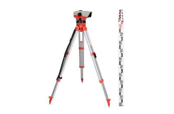 Оптичний нівелір, алюмінієвий геодезичний штатив, алюмінієва телескопічна рейка 5 м. |