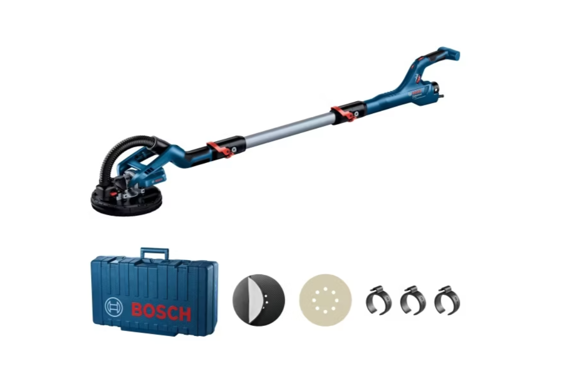Шліфувальна машина для штукатурки Bosch Professional GTR550 спрощує шліфування стель та стін. Ви можете регулювати довжину ручки відповідно до ваших потреб. Пристрій має гнучку головку, що дозволяє обробляти поверхню, не пошкоджуючи її. Він оснащений двигуном з тривалим терміном служби. Ця шліфувальна машина позбавляє необхідності трудомісткого ручного шліфування.