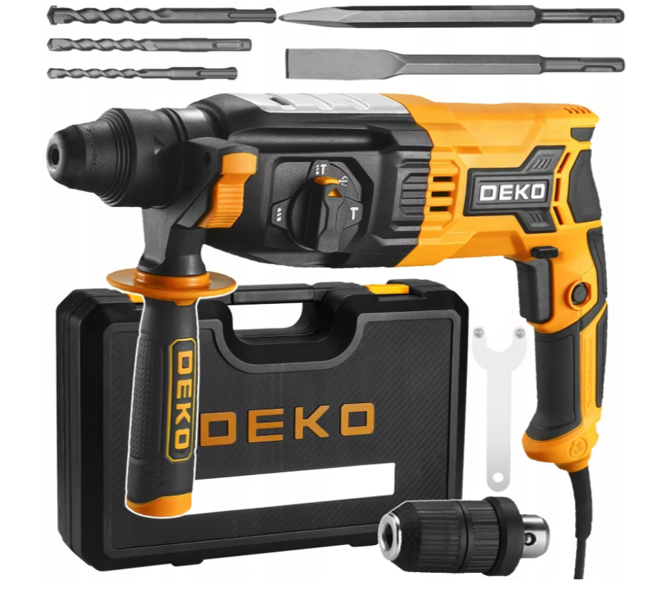 Дриль-перфоратор DEKO DKRH28XL85-ST – це універсальний інструмент «3 в 1», розроблений для користувачів, яким потрібна справжня потужність та довговічність без маркетингових трюків. Оснащений двигуном потужністю 850 Вт, він генерує силу удару 3,2 Дж та частоту 5500 ударів за хвилину. Це дозволяє йому без зусиль справлятися з бетоном, цеглою, каменем та штукатуркою. Оберіть один з трьох режимів роботи: свердління, ударне свердління та довбання. Перемикання здійснюється за допомогою ергономічної ручки. Основний інструмент оснащений системою патрона SDS+, що дозволяє швидко змінювати насадки без інструментів. Крім того, комплект включає самоблокувальний патрон, що дозволяє використовувати традиційні дрилі та міксери. Комплект також включає набір свердел та зубил, все упаковано в міцний кейс з відділеннями для зручного зберігання та транспортування. Вбудований глибиномір дозволяє точно контролювати глибину свердління, що особливо корисно для серійних робіт. Дриль-перфоратор виготовлений з міцних матеріалів та постачається із запасними вугільними щітками, що значно подовжує термін його служби. Це надійний інструмент як для домашнього, так і для професійного використання.